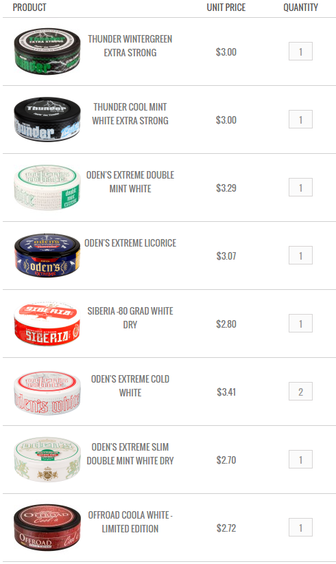 господа, не курю уже как 20 дней. примерно на 8 дней решил купить себе снюсик. знакомый футболист посоветовал типа в инстаграме, который продает шведский oden's cold dry 10mg по 350рупиев. беру вот, снюс шикарный, но никто не знает как можно из-за границы заказать какой-нибудь другой, которого у нас нет в россии желательно без ебли с доставкой? желательно подешевле. всем вкусного и торкающего снюса