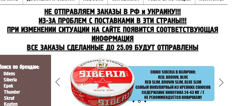 Заказывал на snusline все норм и цены не так кусаются правда все. На английском языке и цены в евро но это не важно когда Снюсик приходит ждать правда от одной до 2 недель с нашей то почтой советую этот инет магазин