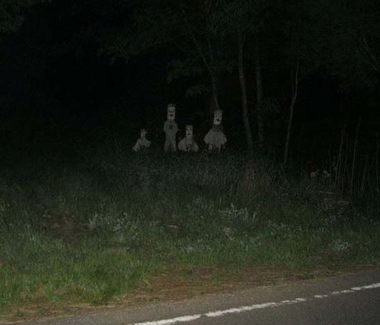 Да как то раз поздно вечером летом шел по темному лесу и мне привиделся заец который во многих раз больше обычного с красными глазами он валялся на земле в неестественной позе я очень сильно испугался и сразу же включил фонарик чтоб убедиться в том что мне показалось и в итоге это был просто какой то пень но пересрался я знатно с него