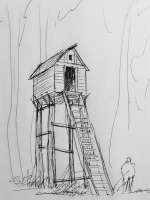 Вместе с родителями и дядей уехали оченьдалеко от города за грибами, отец даже взял фальшфейер на случай медведей. Мы разделились на пары: родители и я с дядей. С дядей мы наткнулись на деревянную хуйню на столбах из обструганных стволов. Я хотел туда забраться, но дядя просто сказал "Пошли отсюда".