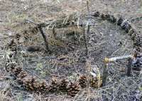 Добравшись до места, из подручных материалов делаете подобие пикрелейтеда, предварительно воткнув ножик в то место над которым будет делаться "домик". Материалы - любые что найдете, главное - сама схема "ограда - ворота - дом". Если материалы не сильно горючие - внутрь кладете бумагу.