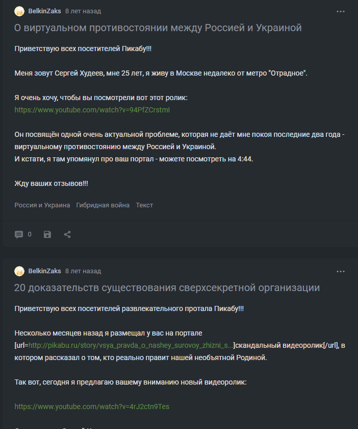 То ли год назад, то ли 2 года назад здесь некий анон постил дневничок из будущего типа 20 лет вперед на каком-то неопознанном славянском языке. Тред описывает пост-апокалиптическое будущее, но несколько оптимистичнее чем в мейнстримных сеттингах постапока. Не знаю, был ли это шизик развлекающийся от нечего делать, или чей-то недоделанный арт-проект, или в самом деле путешественник из будущего. Но до сих пор удивляет, как создатель того треда описал ежедневное бытие настолько подробно, с техническими деталями про постинг и на славяноподобном языке, который никак не гуглится (предполагали, что какой-то очень отдаленный диалект сербского или болгарского). В треде были картинки очень шакального качества и описания мутантов от скрещивания с человеком: одни гадили через псиоп, людоедство и разрушение инфраструктуры, другие были жирными зомби похожими на людей.