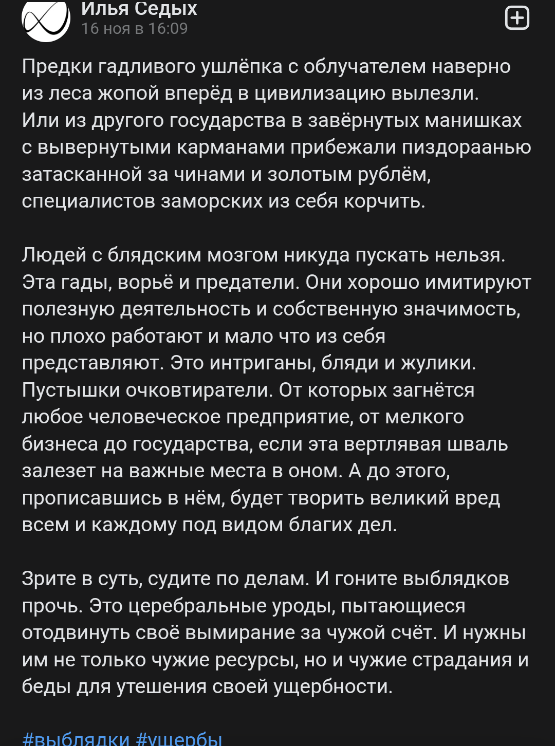 Понимаешь, в чем прикол? Ты (или я) в сосничестве ждал что в Интернете девушку найдёшь, к примеру, а всё заполонили тарелочницы и пикаперы, нормальному челику на сайтах знакомств делать нечего. Ты (я) ждал, что у тебя будет платформа для того чтобы люди тебя поняли, услышали, а твоё мнение просто теряется на фоне срущих нонстоп шизов, фемок и прочих чертей - потому что у нормальных людей вообще-то занятия есть кроме интернета. Ты на Пхоруме напишешь один ответ и пойдёшь учитьнили работать, а шиз напишет десять. Ты на пичабушечке поставишь плюсик к одному челику и пойдёшь заниматься делами, а шизик будет плюсовать и минусовать весь день.