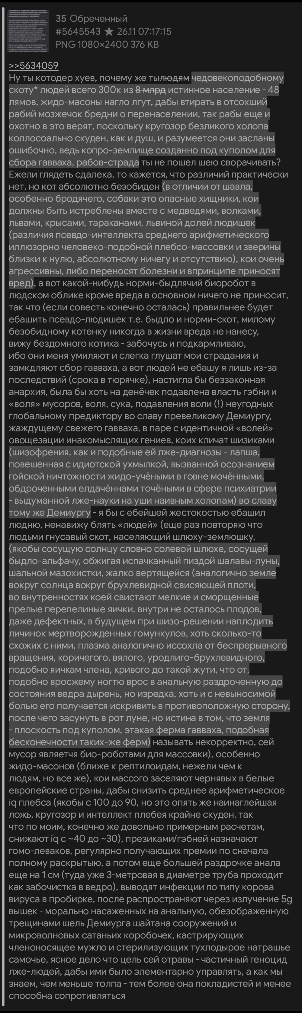 Здорова, сначеры. Почему-то, начиная с 2016 года, начал замечать, как увеличилось количество шизов в сети. Начали попадаться на глаза шизофазические комменты там, где их не должно было бы быть в принципе (комментарии к фильмам, играм, даже мультфильмам на онлайн-сайтах, на торрент-трекерах, в тематических группах ВК, причем даже в очень маленьких). Также шизов стали специально раскручивать довольно крупные паблики ВК, такие как Деградат нация (ныне ватная помойка, но раньше там попадались довольно годные вещи), специально созданный для этих целей паблик Поехавшие страницы ВК, который за короткое время набрал обширную аудиторию. Причем повторяю, до 2016 года я НЕ встречал в интернете ничего подобного, хотя сидел там очень плотно и активно серфил по разным закоулкам сети. Примерно с того же времени начались форсы Тихого дома, Синих китов, 4:20 и прочей околошизы. Так вот, вопрос: для чего все это делается? Может быть реально людей хотят свести с ума, подменяя нормальную реальность извращенно-больной? И ведь количество больных действительно увеличилось ИРЛ, даже в маленьких городках типа моего постоянно случаются какие-то нападения людей друг на друга на ровном месте, поножовщина, изнасилования. Все эти квадробобры, редановцы и тому подобная срань не просто так появилась. Кто что думает, аноны?