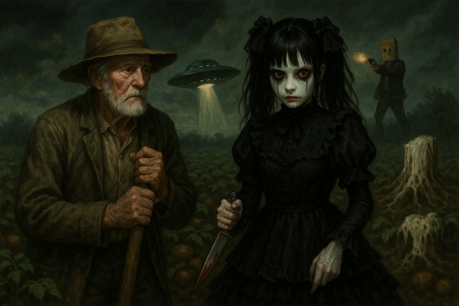 Мне кажется лучшая история снача про пни-велиточники, почему - потому что она не выдуманная, это реально какие-то алтайские неошаманы, которые и жертвы пням приносят и биолокацию используют, вобщем синкретический культ где традиция смешалась с волной увлечения экстасенсорикой 80-х, но мужик был простой, бесхитростный, и не выяснял что откуда взялось, а сделал как сказали, и ему помогло, и рассказал об этом явно так как он привык обычно говорить, а всё остальное - выдуманные крипи-пасты. Одно плохо - пень не может быть маскотом, а какая сила стояла за этим пнём мы не знаем. Я бы предпочёл чтобы не было маскота ибо пока нет хороших кандидатов.