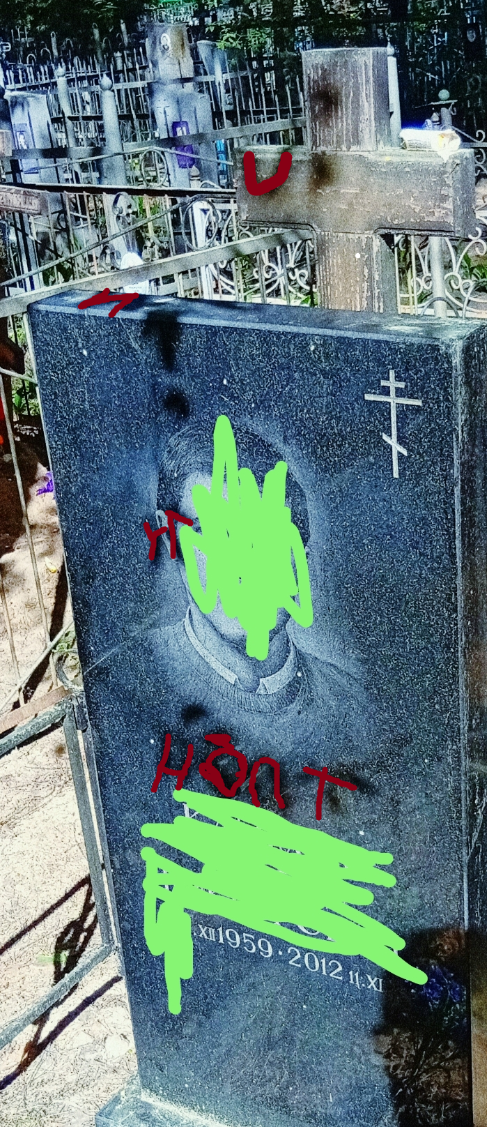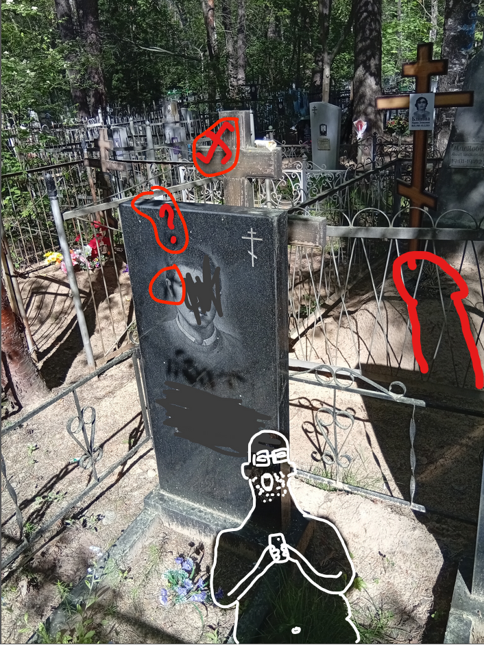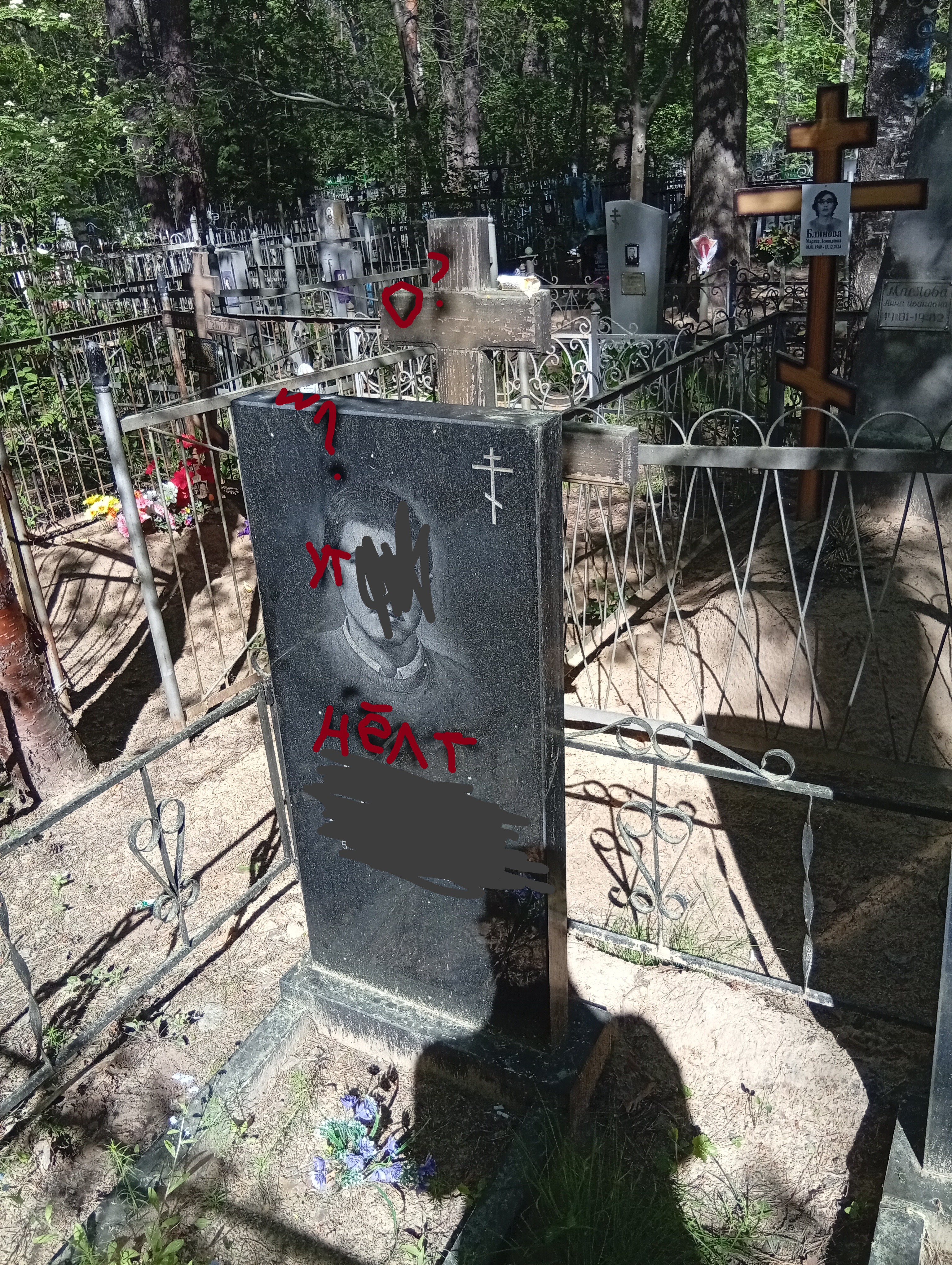 >>858364 (OP) Самый главный вопрос, как можно было этого не заметить на месте? Можно было бы осмотреться, поискать улики, осмотреть мазню повнимательней, её фактуру. Версий без инопланетян у меня только две: 1. Памятники из такого материала имеют всратое покрытие, которое любит выдавать артефакты. Бывает порой от дождевых капель там и лица искажаются в жуткие гримасы, и чего я только не видел. Думаю там и пальцами потными можно всё испортить. 2. На кладбище полно вандалов говнюков малолетних, которые портят имущество без особой причины, по принципу - раз кто-то бросил краску, значит надо её въебать. Люди там постоянно оставляют остатки всякой лако-красочной темы, и часто можно найти хаотично загаженные памятники.