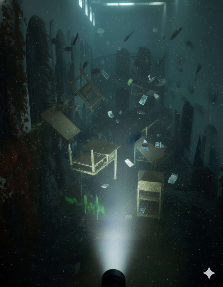 2. Локация всё та же, только на этот раз я заспаунился уже сразу в школе. Школа вся затоплена, будто бы я и сами помещения находятся на дне океана или моря. Но при этом я спокойно хожу, могу дышать и не испытываю на себе воздействия воды от слова совсем. Но всё остальное вокруг меня действиям воды подвластно, начиная от парт, стульев, всяким другим мусором, заканчивая одноклассниками. Ну то бишь те буквально плавают вокруг и будто бы не замечают меня, просто проплывая мимо. Какого-то конкретного действия во сне я не выполнял, просто бродил, смотрел, осматривался. В конечном итоге я просто проснулся