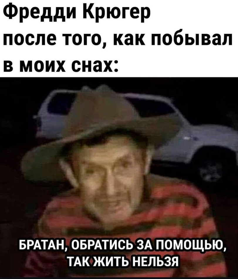 2. Сон начинается с того, что я с батей сижу в его машине, которая была у него лет 12-13 тому назад. За окном ночь, мы куда-то едем. Мне столько же, сколько и сейчас, батя мб чуть-чуть моложе того, каким он есть в наши дни. Едем едем пока не останавливаемся то-ли у какого-то паба/бара, то-ли вообще у борделя лол. Точно помню, что от места внутри исходила эдакая атмосфера Бада Бинга из "Клана Сопрано", в соответствующих декорациях. Ну мы зашли как свои, пиздим, пьем, угараем над чем-то. Потом батя начинает то ли приставать к какой-то телке, то ли это была его нынешняя (батя с мамкой в разводе с моих 3-х лет), но, короче, к нам подошла свита каких-то хачей и давай тут выяснять чья баба. Слово за слово, батя у меня всегда в пьяном состоянии становился особо буйным, стоим мы уже на улице обмениваемся ругательствами, как в моменте чето всё переменилось и мы резко начали общаться в дружественной манере будто секундой назад никакого конфликта и не было. Ну короче мы побратались, попрощались да поехали кто-куда. На этом сон оборвался