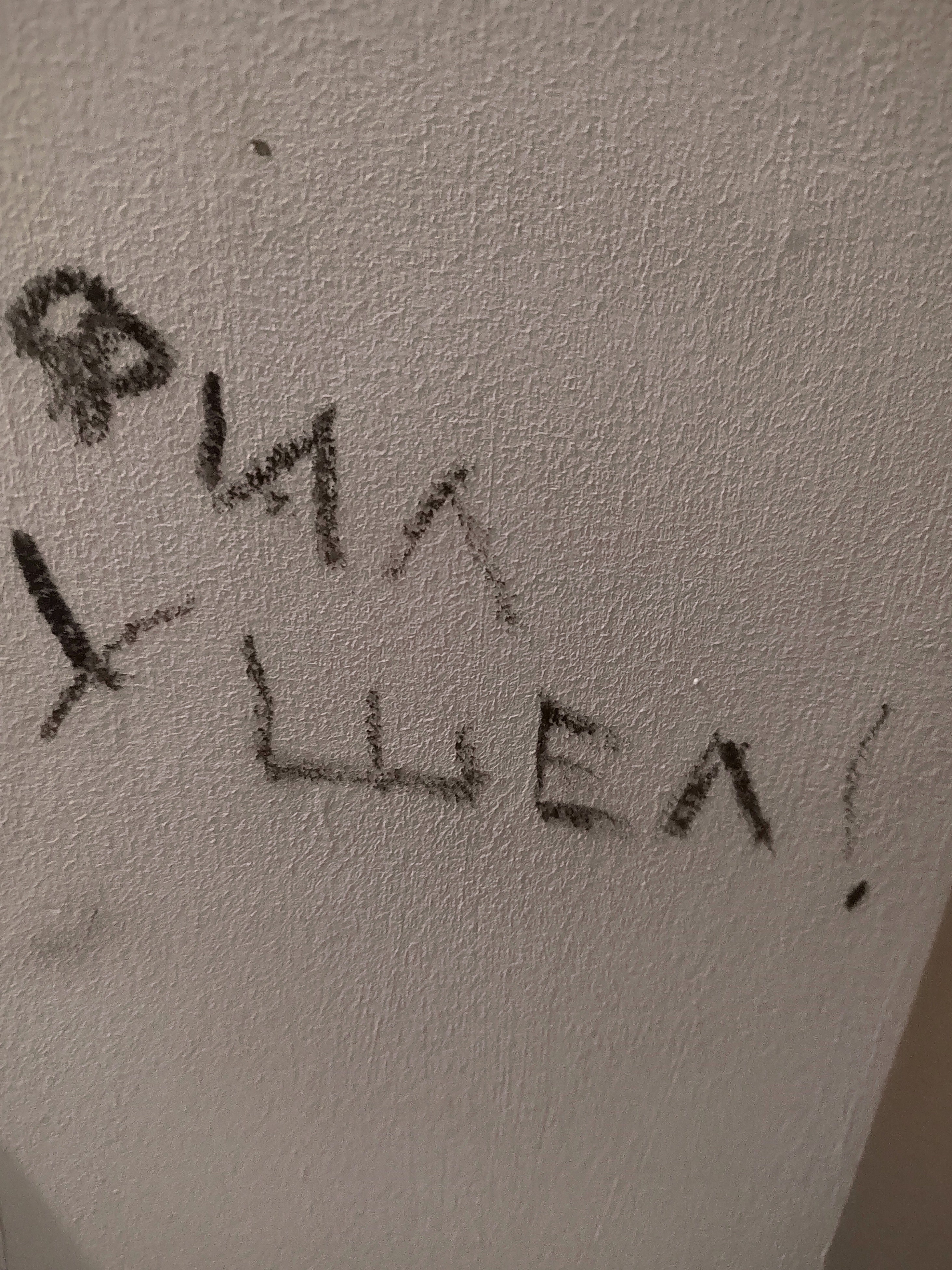Сап снова, извиняюсь за долгое остуствие. Заболел и ездил к родителям. Сегодня вернулся опять блять со смены. Вот надпись если кому интересно, удивительно что её до сих не стёрли
