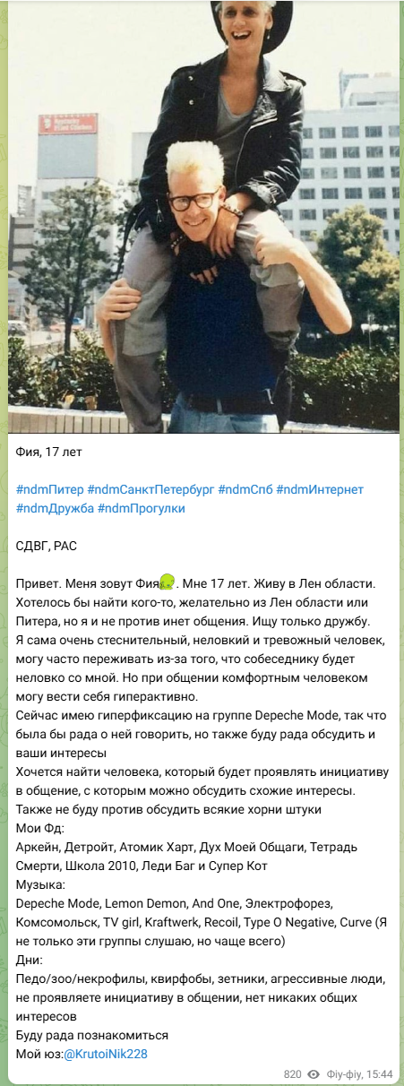 >>7247098 > У тебя это было всегда? > И всегда ли способен на это? в детстве и отрочестве очевидно похуже, но родаки тем не менее видели что я немножечко более эмпатичный ребёнок чем надо, и это наверное была одна из причин их желания загнать меня в чувство собственной вины, никчёмности, безысходности свого положения, беззащитности перед ними чтобы я нихуя не смог им сделать или сказать из того что им не нравится. на это ничего не влияет, очевидно не считая веществ вызывающих бред и бредовые галлюцинации я в реальном времени чувствую что в голове у другого человека, кроме случаев когда человек максимально отстранённо коммуницирует буквами по интернету, тогда пара дней прежде чем я буду знать как он устроен и какие чувства испытывает у меня в раннем подростковом возрасте была амбиция в сторону психологии, профессиональной (или не очень) мозгоправки нуждающимся, психотерапии и прочего в таком духе, можно сказать вполне серьёзно думал о профессии будущей а потом я обжёгся в количестве один (1) раз не сумев полноценно погрузиться в беды с башкой другого человека, и через некоторое время я переключился на музыку, игру на всякой хуйне, теорию, сонграйтинг и всё прочее но проблема в том что музыкального таланта я так в себе и не нашёл, я никогда не чувствовал музыку так же хорошо как внутренности других людей, хоть старания и принесли достойный результат, но тем не менее и сменил в итоге ярлык "духовный преемник зигмунда фрейда в лице инкарнации карла юнга" на ярлык неебаться тонкой натуры-музыканта с неебаться огромным творческим потенциалом, над целесообразностью наличия которого думаю вот прям сейчас я неоднократно проходил пубертатные тестики на тип личности эмбитиай (здесь пауза для коллективного осуждения псевдонаучных теорий, не соответствующих ни научной, ни доказательной базе) и мне всегда выдавало INFJ, если ты знаешь чо это то понял что я имею в виду, если нет то заебался уже изъёбываься сори я под феником скоро лять спагу пока
