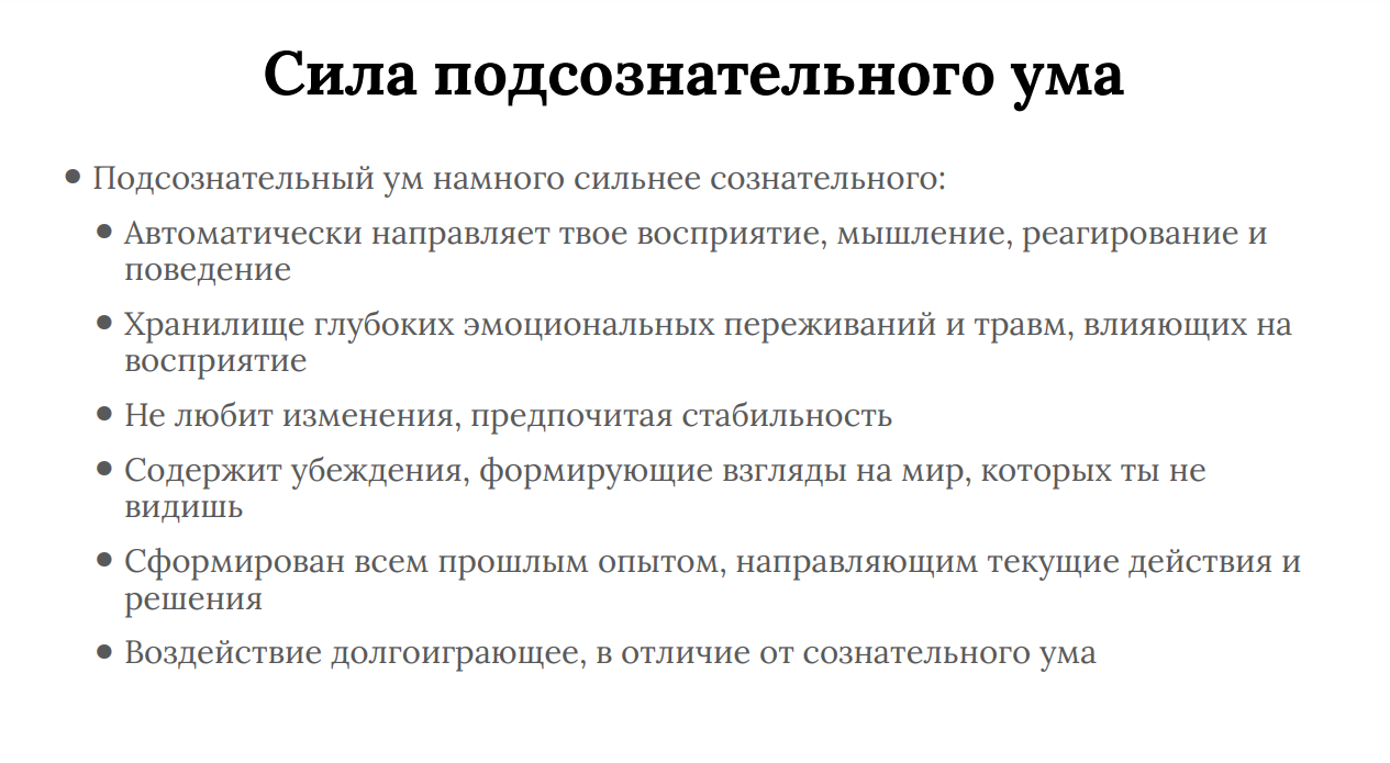 >>7278110 Настоящие изменения приходят только тогда когда мы меняемся на подсознательном уровне, меняя восприятие и мышление. Всё остальное это пустая трата времени.