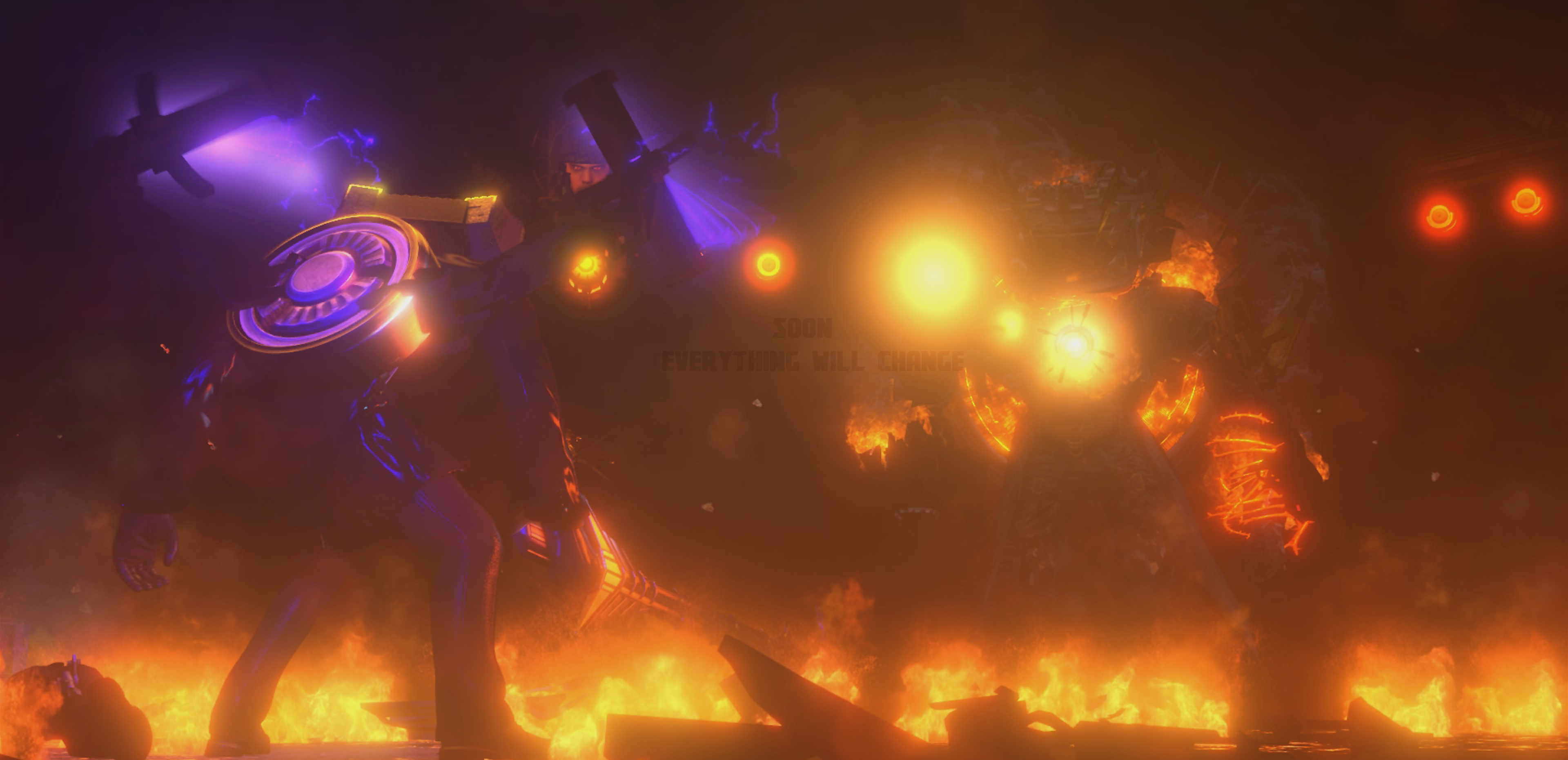 Астро-Герцогиня надевает прикольные очки-звёздочки. С крыльев штурмовиков, висящих в воздухе рядом со Стражем, слетаются 4 телевизора, загораются суицидальным красным свечением, прекращая все выстрелы со стороны базы камераменов. Сами камерамены замирают и впадают в ступор, готовясь начать самоубиваться. Дальше умирает камера POV-Спикера и высвечивается надпись =CAMERA OFFLINE=.