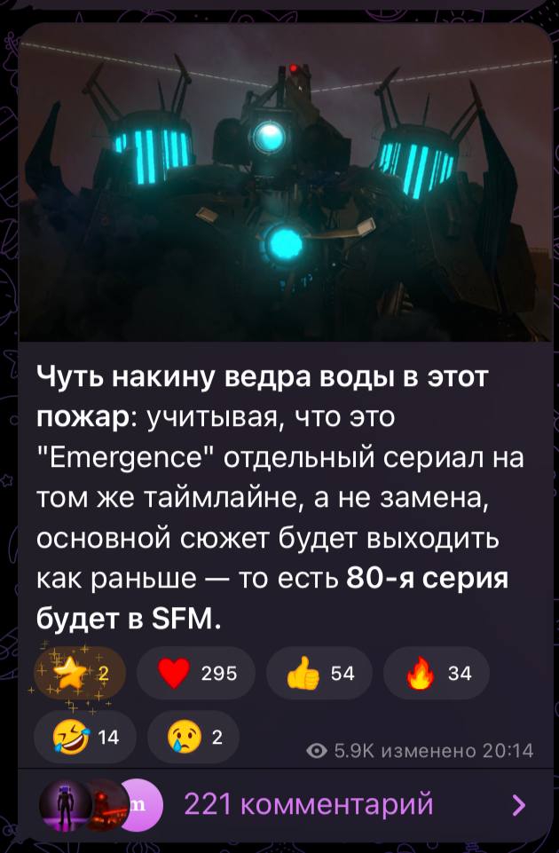 Ну потом основная сюжетка со скибидистом у которого зашиттрот. Но ТВмен-улыбака опять собирается договориться с варп-шизом. Остальные не очень-то за, потому что улыбака уже полупоехавший, и как бы всякое может произойти. Но улыбака всё равно телепортировался, и сгинул. Вот такой сюжет.. всплывает он только в конце основной сюжетки, когда альянсы обосрались. супероружия больше нет, но улыбака стал мини-титаном без ног с пикчи, уже полностью поехавший, но на стороне Альянса. это и есть новое оружие Альянса