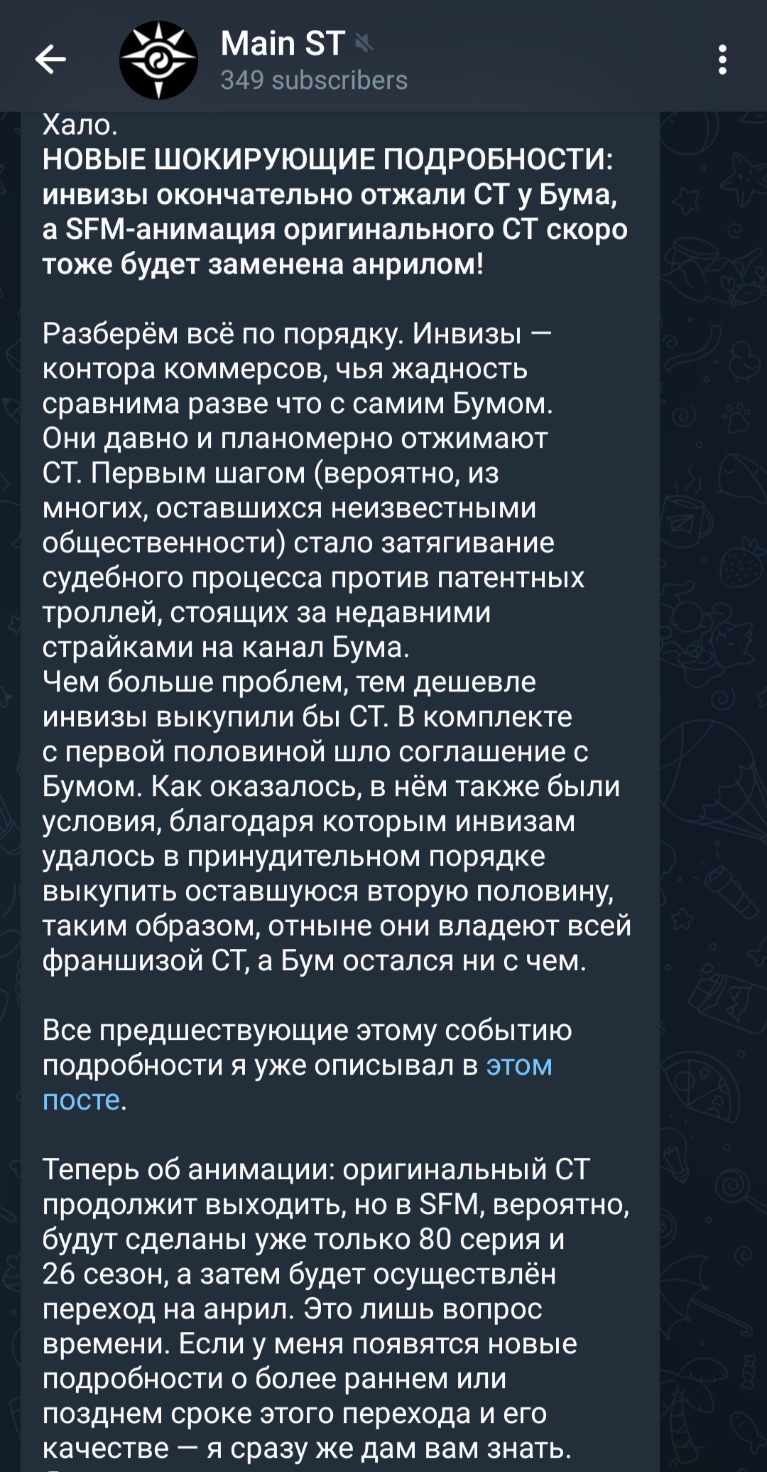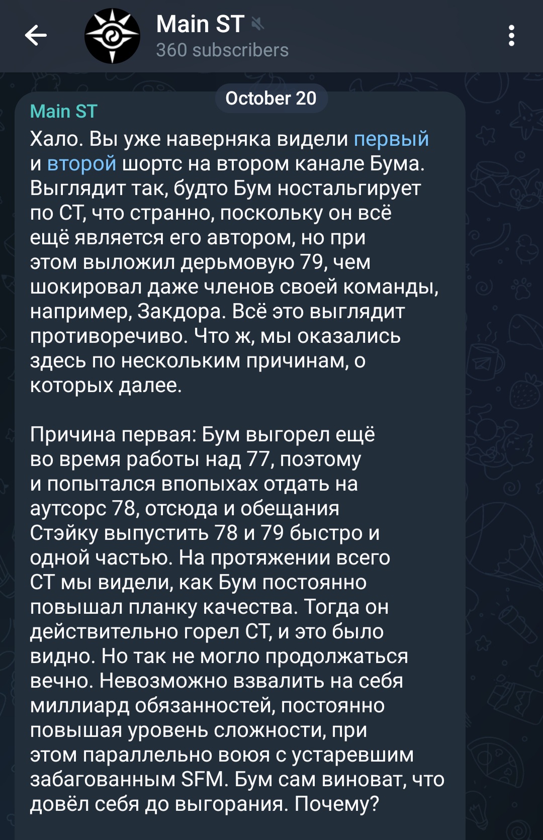 Если верна теория, согласно которой ДафакПук окончательно продал свой канал и анус компании, лишив себя контроля над происходящим, то выходит, что теперь он — куколд, вынужденный наблюдать, как пользуясь его именем на его собственном канале какие-то левые дяди выгружают свои фанмейды, чтобы прорекламить парашу, одновременно с этим оскверняя канон и дискредитируя сам бренд сериала. Возможно, это из-за их давления 79.3 серия получилась сырой, и возможно это было их решение преждевременно выпустить сборник 1-38 серий, который Дапук вообще-то хотел сделать в широком формате.
