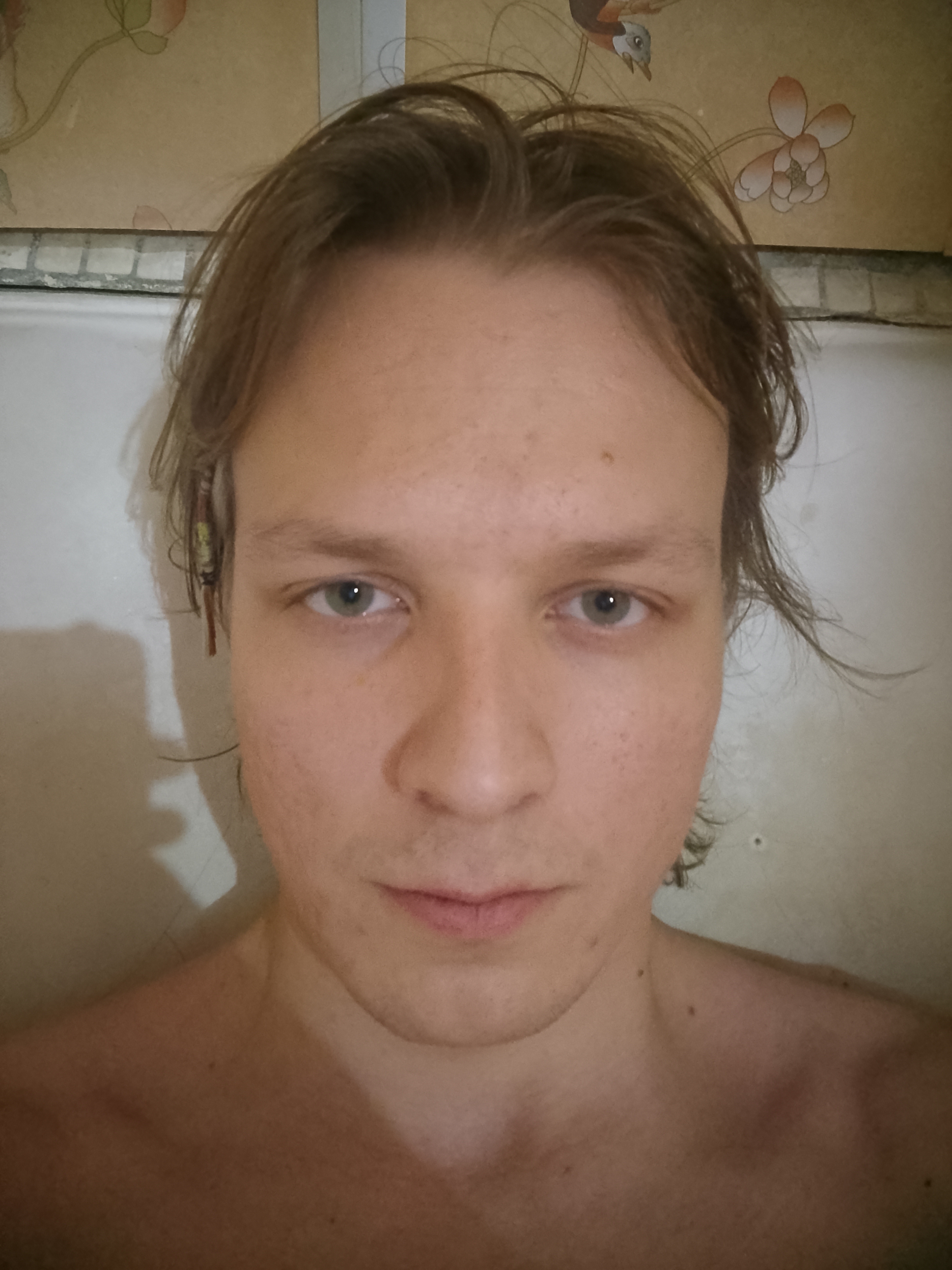 >>7349634 >Карел/чуваш? 7/10 Я живу недалеко от Москвы, не карел и не чуваш. Просто соскуфился и опух. А так скорее ариец, потому что светлые волосы, светлые глаза (раньше были голубые, теперь зелёные), череп прямоугольный и линия роста волос, как у них. Но в принципе, я на это не надрачиваю. А так, у тебя лицо на 7-8/10, если конечно щёки не вдавливаешь. Светлые глаза, пухлые губы, аристократичные черты лица. Конкретно лицо выглядит хорошо, приятно, завораживающе. Хотя взгляд замученный, словно люди тебя заебали. Ну и пока это лучшее фото в зеркале, которое видел.
