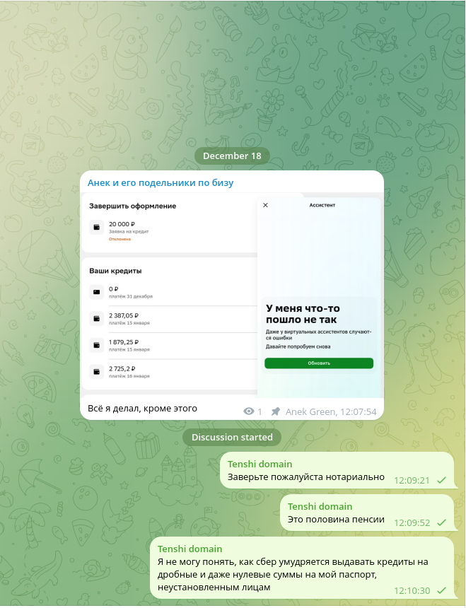 Настоящим рекомендую Сбербанк РФ выдать мне кредит на курительную соль для ванн и шприцы. В эти трудные для страны дни мы должны сплотиться вокруг бандитов, мошенников и убийц, и покарать их ОГРОМНЫМ КЛИТОРОМ под командованием Полковничества Святой Россияшки. Пожалуйста, 20 тысяч мне хватит на 5 лет. Ко-ко-ко!