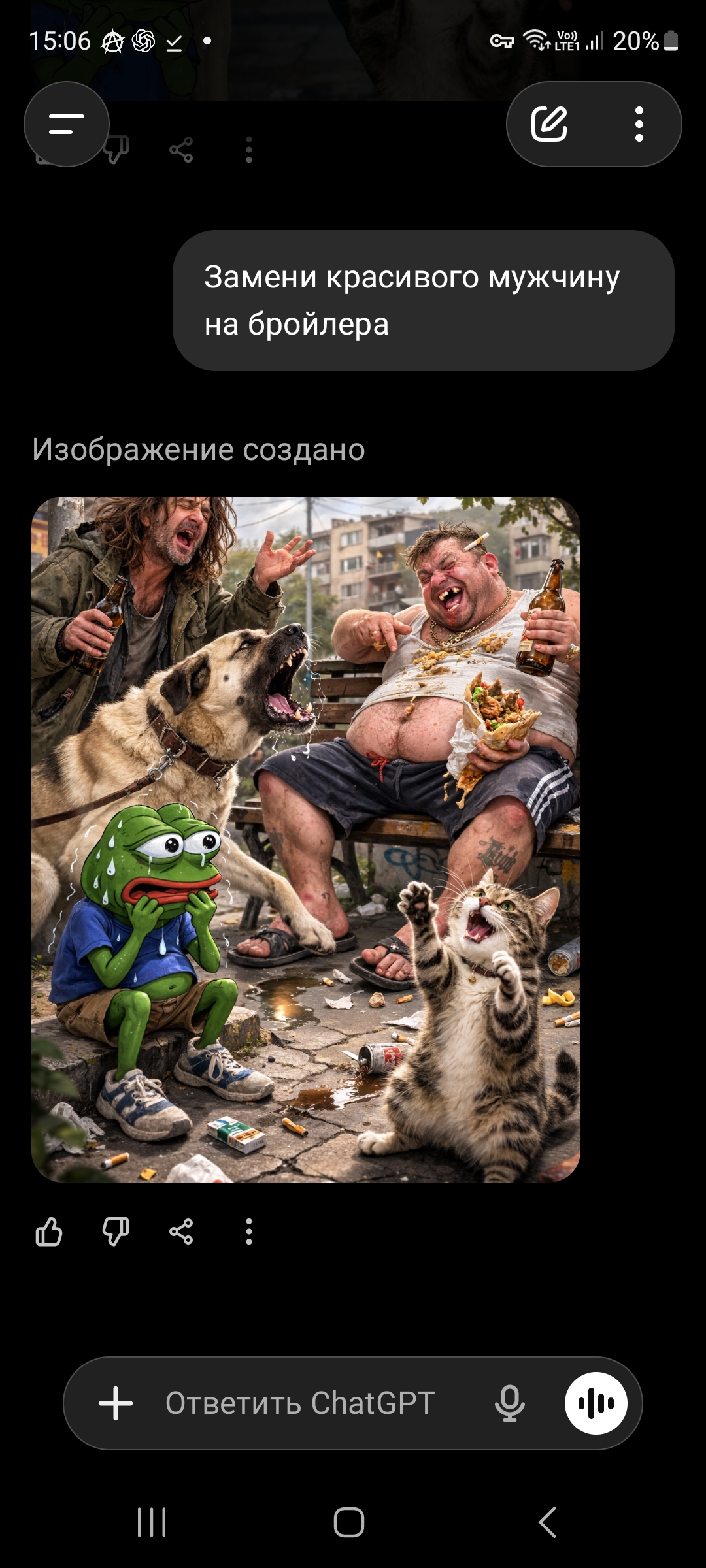 >>7383816 >почему необыкновенной красоты мужчина выглядит как уродливый засаленный румын? Потому что чатжпт считает это красивым очевидно, а вообще доеб ради доеба как обычно, ты бы такому пятки вылизывала ирл кек