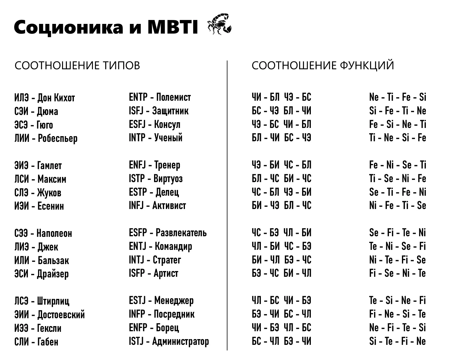 >>211052 > Однако это не отменяет того факта, что все их описания и тесты составлены так, что иррационалы и рационалы полностью совпадают с соционическими. Так случайно вышло + сосаети ублюдки. Для Есенина гораздо логичнее быть по описанию как ИНФЖ, чем как ИНФП, для Бальзака гораздо логичнее быть ИНТЖ, а не ИНТП.