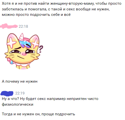 Почему вы, Достоевская, читаете не глазами, а хз чем? Вы где-то видите фразу от меня, что я считаю, что отношения строятся на одном сексе? Классно, если тян соединит и соулмейта и секс. Это бриллиант, это находка. Но соулмейт и отношения без секса (вялый безинициативный секс), то спасибо не надо.