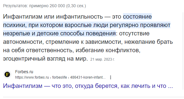 Эгоцентричный взгляд на мир. 50на50. Но я как бе и не считаю, что это инфантильно.