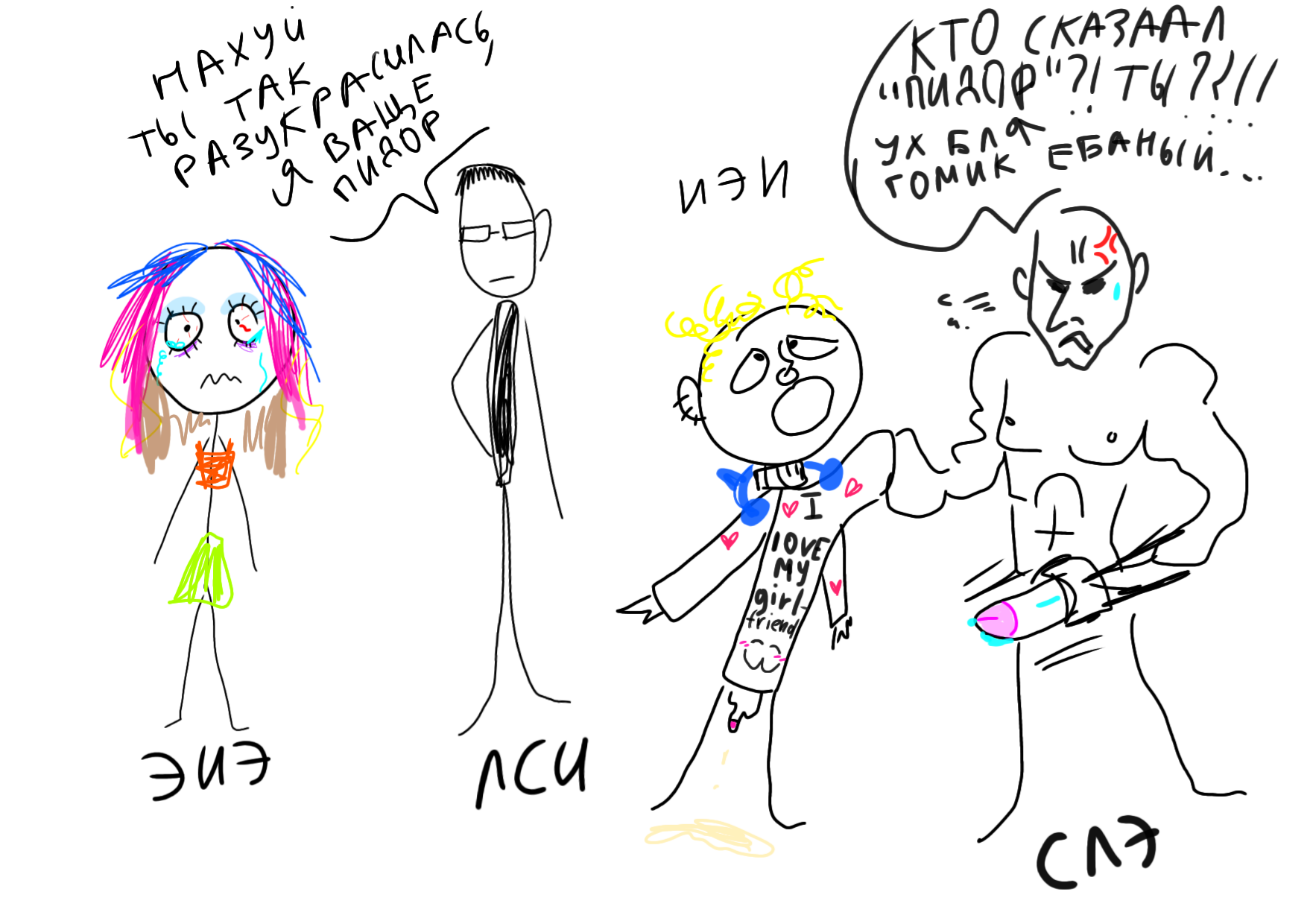 >>189458 >>189459 Может хватит уже мешать в одну кучу слабые и не ценностные функции? Я вот логик и мне может и интересно узнать кто кого ебет, но сплетничать я физически не могу.