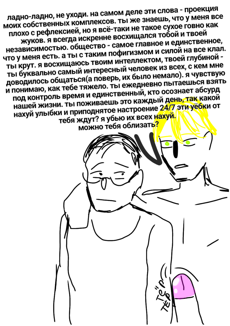 >>189207 >не захотят и не будут надоедать И захотят и будут, лишь бы человек/друг подходящий попался, чтоб была возможность вываливать ему тонны ненужной инфы о своей жизни и переживаниях, как будто это ебать как интересно. Причём тот факт что эта инфа действительно мало кому нужна и поделиться ей не с кем больше всего их удручает. >милота и доброта С запросами на чс, о да блять, нарываются на пиздюлину поизощрённее любого другого виктима. >>189368 >суггестивная чсочка не даёт ныть Бали которых я знаю лютые выпендрёжники и типа дохуя независимые аристократы но только при близком общении могут признаться что постоянно плачут и и думают о грустном.