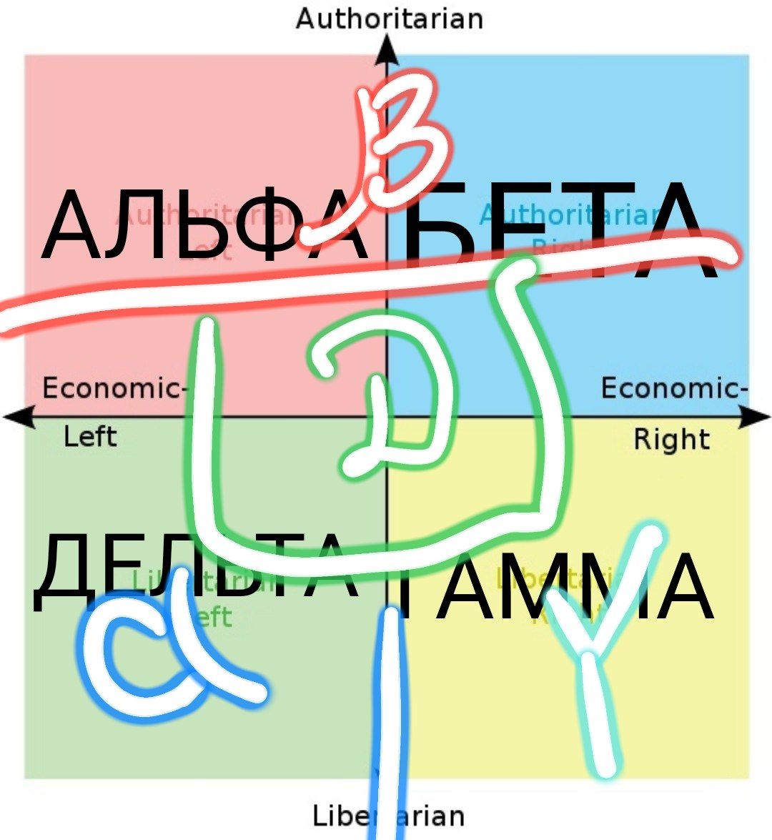 >>198147 >Дельта квадра рабов Не то, чтобы прямо рабов, но приспособленцев - да. "Наша хата с краю" (по отношению к глобальным процессам) - их негласный девиз. Значимые порядки в мире задают бета и гамма, альфа ещё как-то новые идеи поставляет.