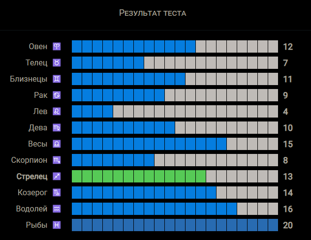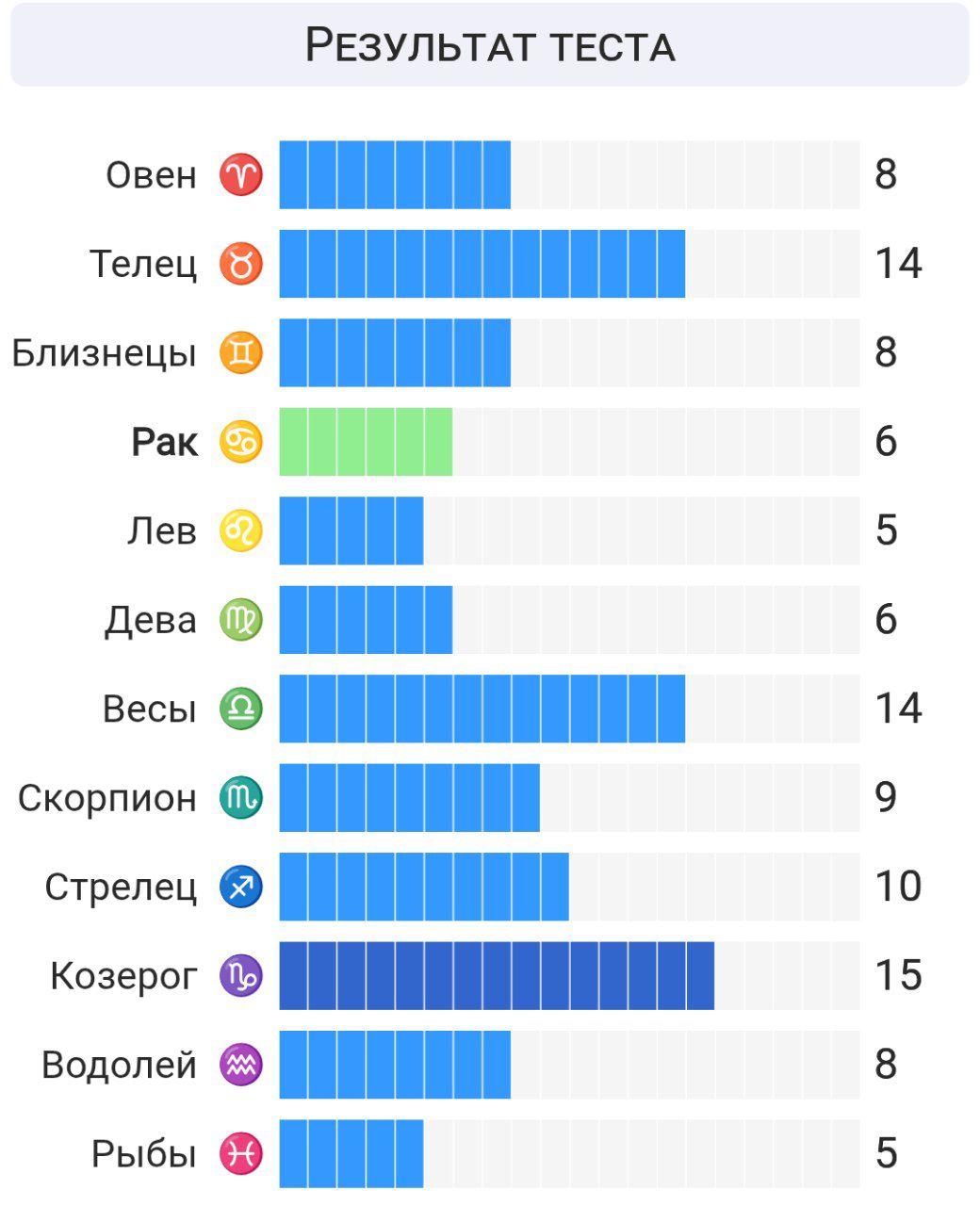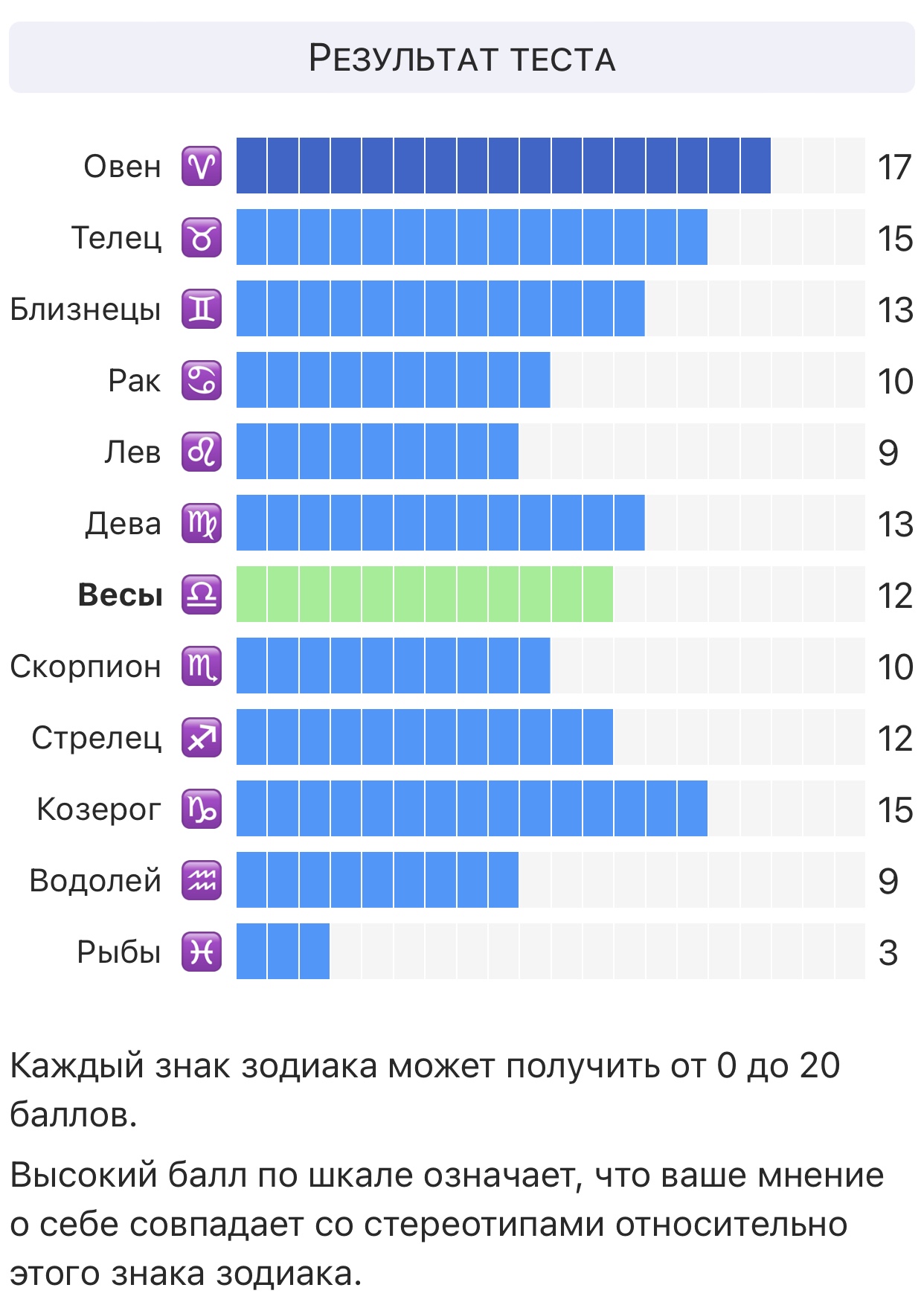 вы нахуя это делаете? тест по гороскопу проходят на доске соционики.. не надо тогда удивляться, что у нормисов к соционике отношение как к гороскопам, даже хуже. да, есть на доске несколько припизднутых, которые просто обмазываются любыми говнотестами и высирают эти треды завлекая других, но зачем опускаться до их уровня?