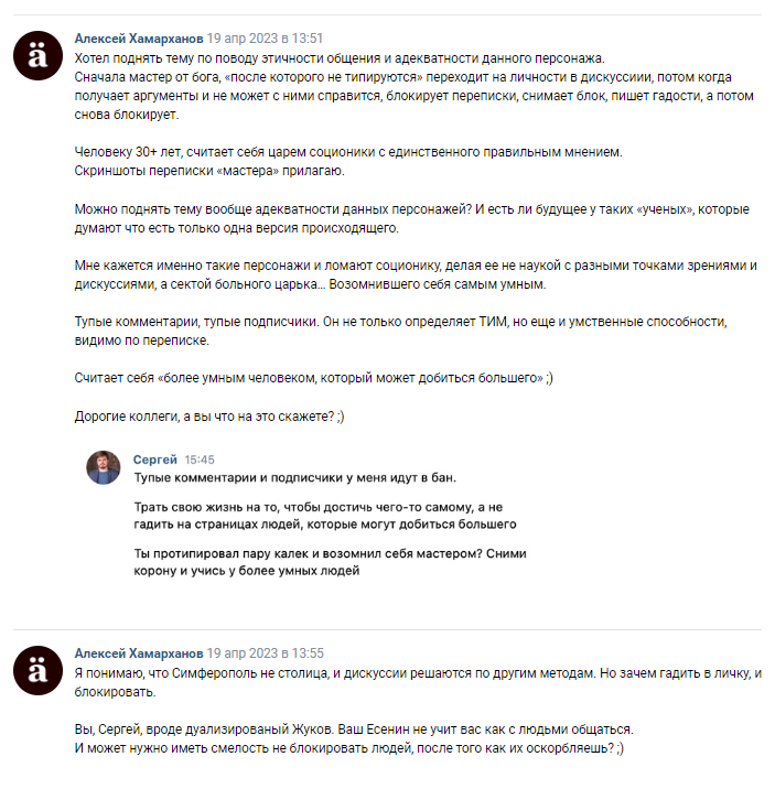 Все хохлы (кроме вышеперечисленных) - сборище жалких уродцев. Именно из-за них соционику считают лженаукой, потому что наукообразные термины они использовали, чтобы впаривать соционику. Дети 80-х, лохотронщики, наследники Кашпировского и Чумака, чьи методы за 30 лет не изменились. Гуленко, увы, туда же.