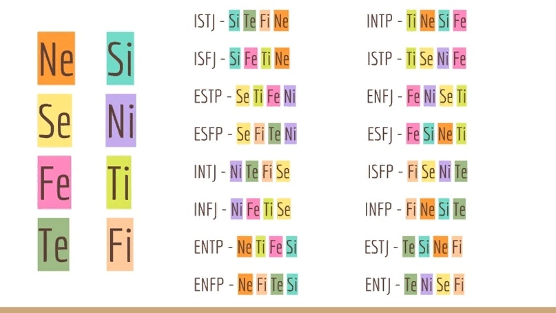 Ну как вам, видите логику? Т.е доминирующая 1) Si - анальник 2) Se - уретрик 3) Ni - обонятельник 4) Ne - оральник 5) Fe - зрительник 6) Te - кожник Вот с Ti и Fi шняга вышла, только в дуэте, т.е 7) Ti+Ne/Fi+Ne - звуковик 8) Ti+Se/Fi+Se - уретрик