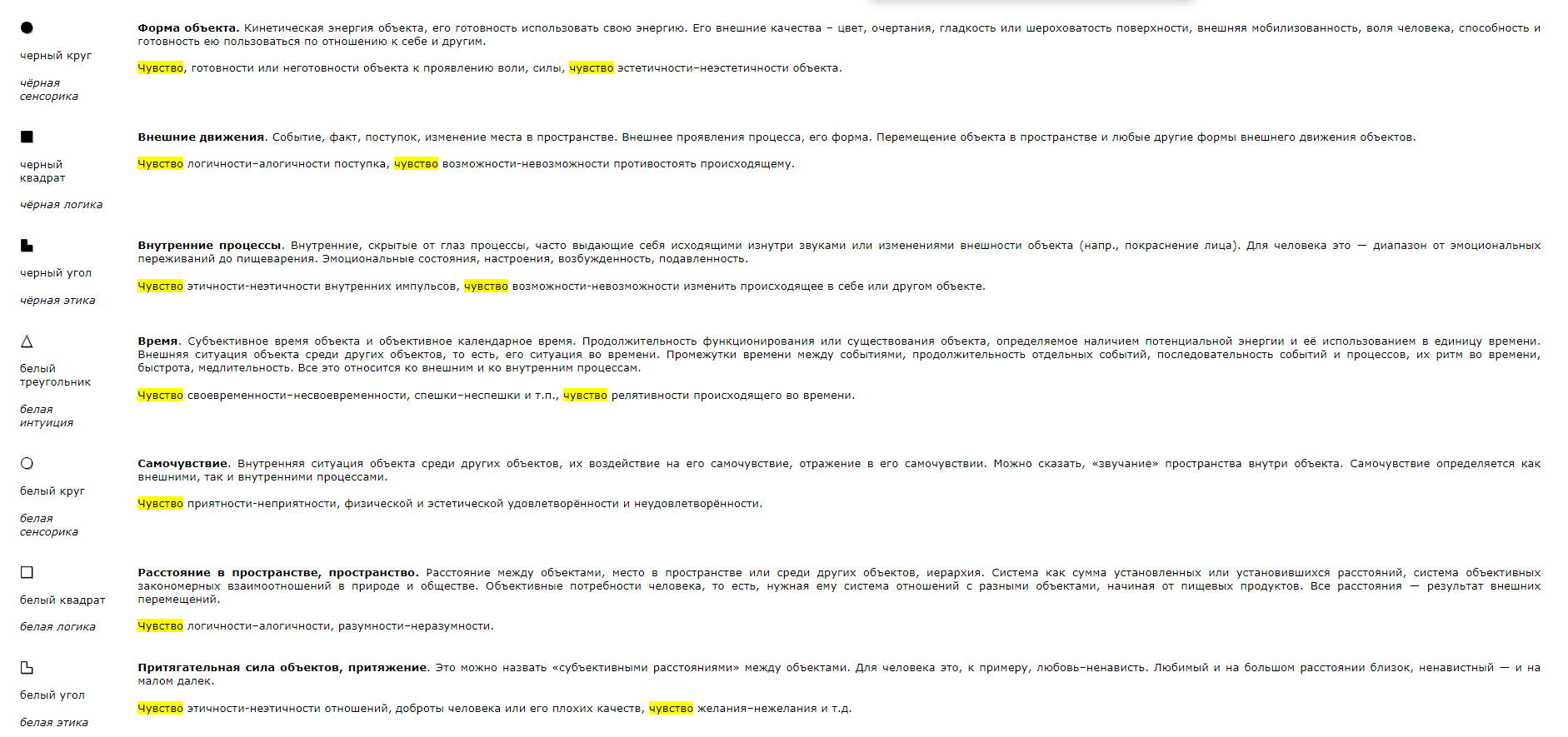 >чувствами живут как чёрные, так и белые этики. как же тогда провести между ними чёткую границу? Элементарно. Экстравертированные чувства задаются внешними объектами, интровертированные внутренними.