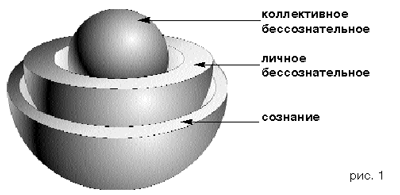 Базовый курс аналитической психологии, или Юнгианский бревиарий (Зеленский Валерий Всеволодович) >Юнг предлагает представить психику человека в виде земного шара, выделяя при этом три слоя (рис. 1). На поверхности этого шара, подобно земной коре, располагается сознание человека. Под структурой сознания находится гораздо более обширный пласт забытых или подавленных личных воспоминаний, чувств, поведенческих моделей, который Юнг назвал личным бессознательным. Под ним заключено ядро психики - коллективное бессознательное, заполненное древними образами и поведенческими реакциями, которые многократно повторялись в истории человечества. >Сознание. По Юнгу, человеческая психика носит целостный характер и представляет собой единство взаимодополняющих сознательных и бессознательных процессов. В соответствии с этим в психическом выделяются сознательный и бессознательный аспекты. Эти аспекты, или составляющие психики, не только дополняют друг друга, но и находятся друг с другом в компенсаторных отношениях.