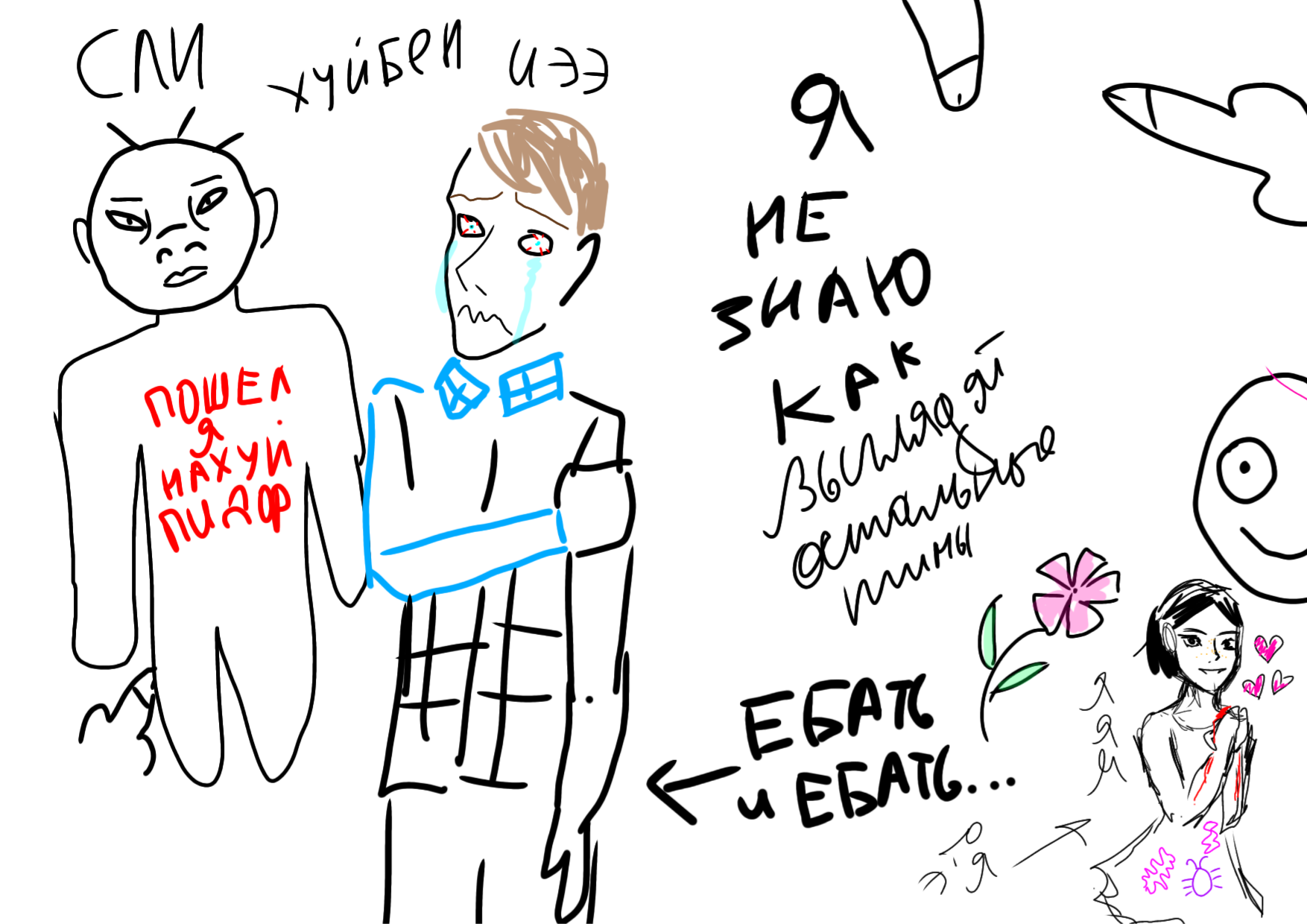 На самом деле мне их немного жаль, особенно баб. Потому что жалко выглядят их потуги завести коллектив своими уёбищными рассказами, поэтому иногда я могла сделать вид, что они кому-то нужны(что кстати зря, внутри у них нихуевый стержень и им в принципе плевать на мнения людей, важнее слить энергию и найти бесплатные уши - ну мерзкие твари короче).