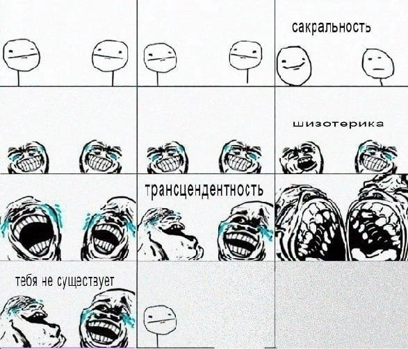 11) Гексли В целом неплохие, очень интересные ребята. Умные. Смешные. Очень хорошая интуиция, вот их надо слушать а не всяких БИшных. За счёт этики и манипулятивности как обезьяна с гранатой. Если им в голову что-то придет, то пиши пропало. Но это кста скорее в виде исключений, поэтому что главный минус кроется в другом: ёбнутые. Котики, промискуитет, перверсии - вот это все про них. Вонючки. В целом забавные ребята многому(как у Гамлетов) у них можно поучиться