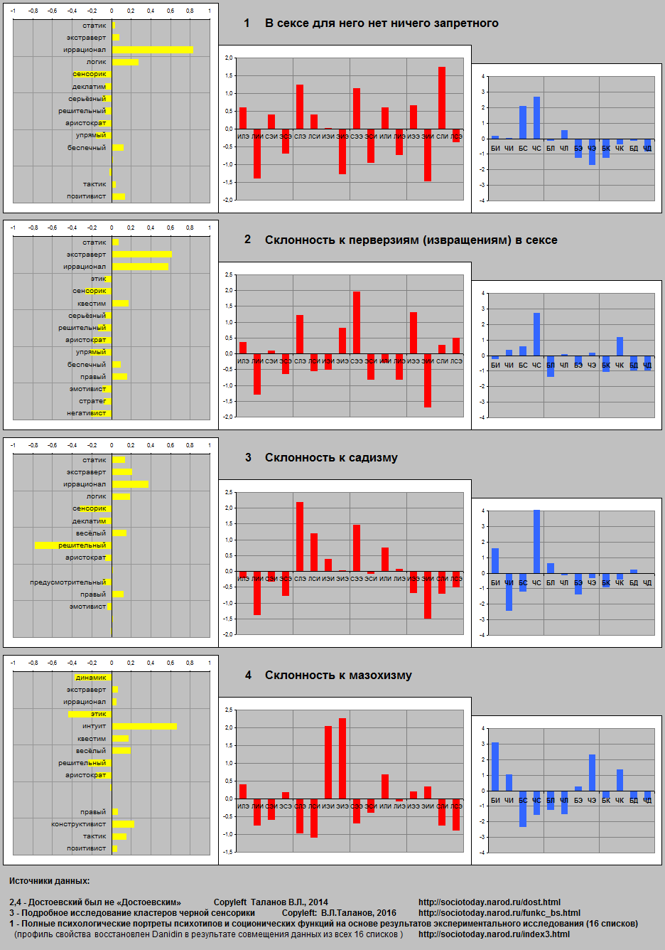 >>201821 >У него жизненная ситуация такая, что любой дединсайднется. И видно, что работка по ЧС потихоньку плавит ему голову. Ну так и есть, но почему он именно дост, а не есенин? Понятно, что он бэ+би этик-интроверт-интуит с одномерной чс, но у него в окружении ни одного дельтийца нет (жучка тоука, дюмка хинами, дон хиде, гамлюк цукияма, максон арима, джечка это и тд), сама манга очень чс-бишная. >Открываем функции INTJ Открываем дихотомии интж, видим рациональность. Открываем описание интж, видим не бишного шизоида, а тип с сильными чс+чл (пикрел). Открываем мбти списки типирований знаменитостей, видим там чсников, штиров и джеков.