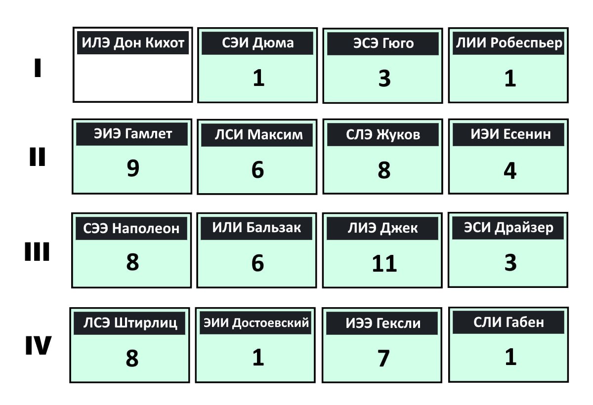 >>205693 > условных Сенсориков с 1Э быть не может Дюмы и гюго могут быть >там тупо не откуда взяться 1Э при базовой БС или ЧС Базовые БС и ЧС могут сочетаться с творческой или фоновой ЧЭ