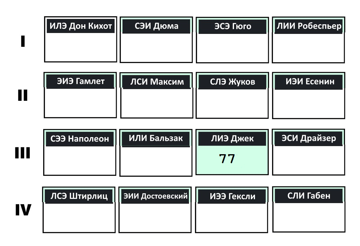 >>209625 >там нет некоторых ТИМов Само собой, знаков 12, типов 16 Ну и для роба и баля правда нет похожего архетипа в астрологии. Водолей или дева наверное ближе всего будут, но читая их описания вряд ли кто-то в первую очередь о бальзаке и робеспьере подумает
