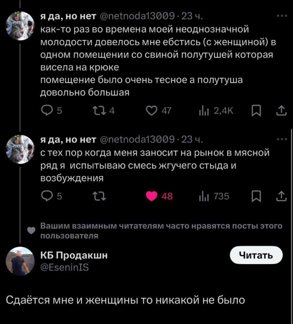 >>208969 У есек сочная жопа, инфа проверена на 100%. Такой многие сенсорши позавидуют У джечек сочная жопа интровертки-рационалы доски, даже сенсорные. Гамлетки в основном доски Жучки и Напки скуфьи от балек вайб немытой жопы и пизды, да и сами в оверсайзе постоянно, видимо комплексы. В общем все сказал.