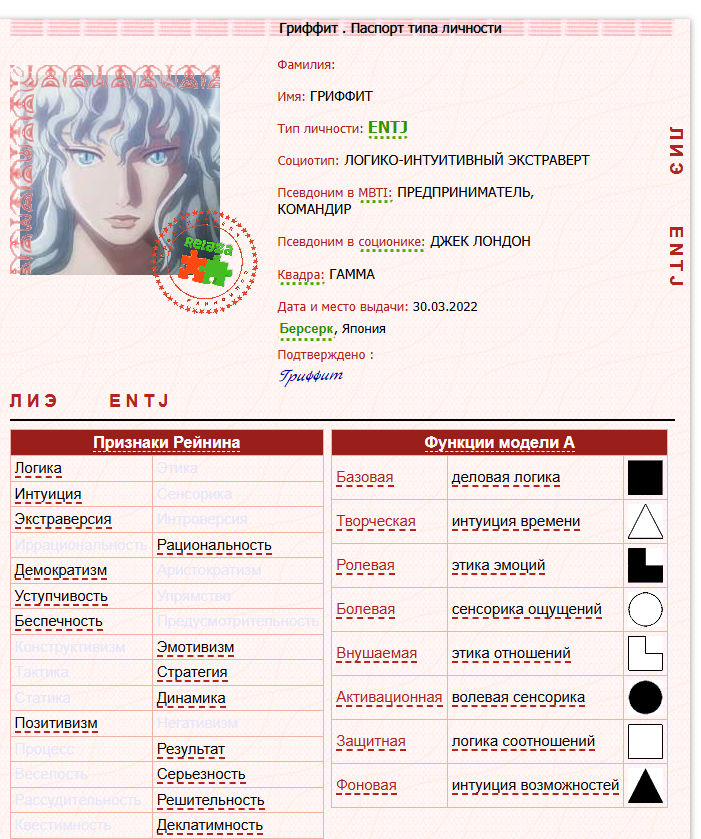 Т. е. сюда не укладывается представления о «Практиках», женщинах, о мужчинах, «Гуманитариях» и всём остальном соционе, потому что там вперемешку или логика-интуиция, или сенсорика-этика.