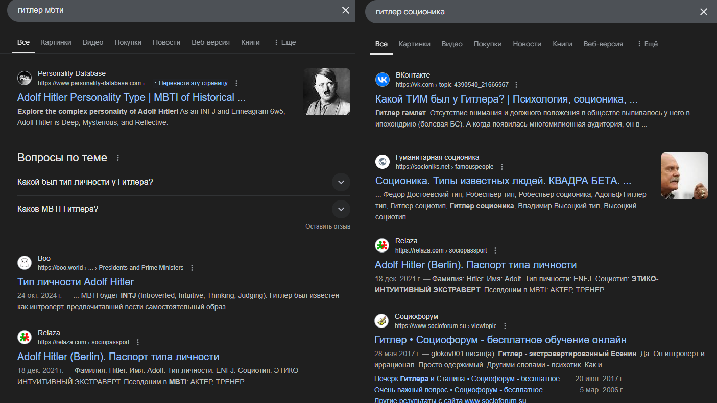 >>208846 >Самые «нормисы» — это Штиры и Габены. Макс не совсем нормис, но его уважают. >Если говорить про ЯОШ, это часто Кто угодно, зависит от аниме. Может быть Балем, может быть Достом или Драйзером, но в 95% случаев интроверт из серьёзных. >Самые женственные типы, несложно догадаться, — их дуалы, Еся, Дост, Гексли, Гамлет, так называемые «Гуманитарии». С тем, что Гамлеты и Есенины являются женственными, можно поспорить. Варг Викернес дохуя женственный? А самый известный Гамлет (усач из Австрии)?