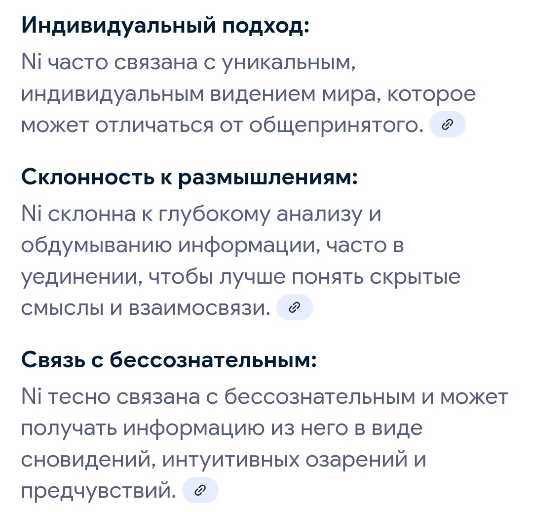И да, для БИ то, что ты написал, тоже свойственно. Да и вообще все представления о функциях/типах/квадрах, что ты якобы "разрушил". Вся культура соционики строится на стереотипах и совокупности образов/понятий, прикрепленных к тому или иному типу, аспектам. Ценностный, а особенно програмный БИшник это бы уважал, понимал и учитывал (не зря ведь этот аспект называют интуицией взаимосвязей). У тебя же понимание есть (фоновая), но вот ввиду ценности/вербальности БЛ+ЧИ стремишься не к гармонии с системами этих образов, а их переформатированию, подстраиванию под себя, создания своего собственного порядка ввиду каких-то личных комплексов, жажде внимания или ещё непойми чего.