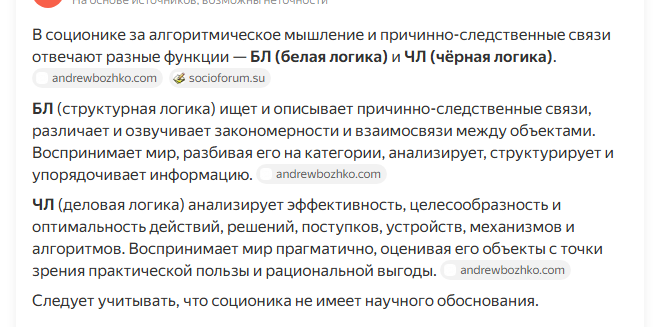 >>214561 >или ты себя имел в виду? Да, но это скорее не творчество, а ремесленничество. >ЧЛ в большей степени ориентирован: алгоритмическое мышление, причинно-следственные связи, внимательность к деталям Я когда начал в кодинг через нейронки понял, что программирование не для меня вообще, я максимум могу задачу написать для дипсика и минимально код отредактировать (изменить цифры какие то), могу придумать какую то логику но без понятия как перенести это на код, это как раз для БЛ чуваков, всякие классификации, обозначения знаковые что с чем соотносится и все остальное.