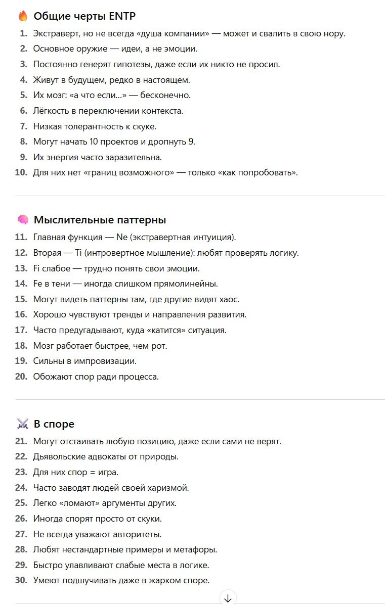 Офигенно умеет защитить логикой и подтасовать малосвязанный набор фактор для обоснования абсолютной зачастую ахинеи, объективно очень крутой дебатёр (ENTP вроде так и называется в мбти "Полемист"), по собственным же рассказам имеет проблемы с доведением дел до конца, является крайним проебщиком по времени и имеет репутацию проебиста. Вся деятельность и основной набор тезисов с которыми он завоевал успех - далеко за пределами окна Овертона и имеют заряд смелости и новаторства, просто на контрасте со скрепной ноосферой.