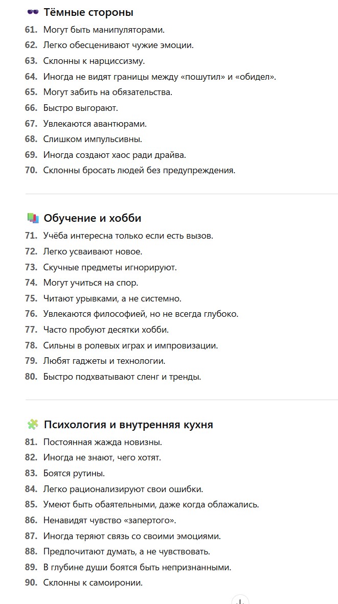 Можете пожалуйста дать TLDR на тему каких острых углов избегать при взаимодействии с этим психотипом? Как его радовать и как не огорчать и не триггерить?