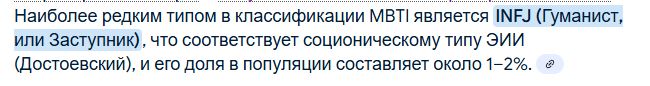 >>214845 Нейросеть чаще всего нормально отвечает, просто из-за того, что существует МБТИ и соционика и у них между собой слабая карелляция, то зависит спросил ты по соционике или по мбти. По мбти нейронка выдаст хуйню, но она будет соответствовать впринципе правилам мбти. По соционике всё нормально