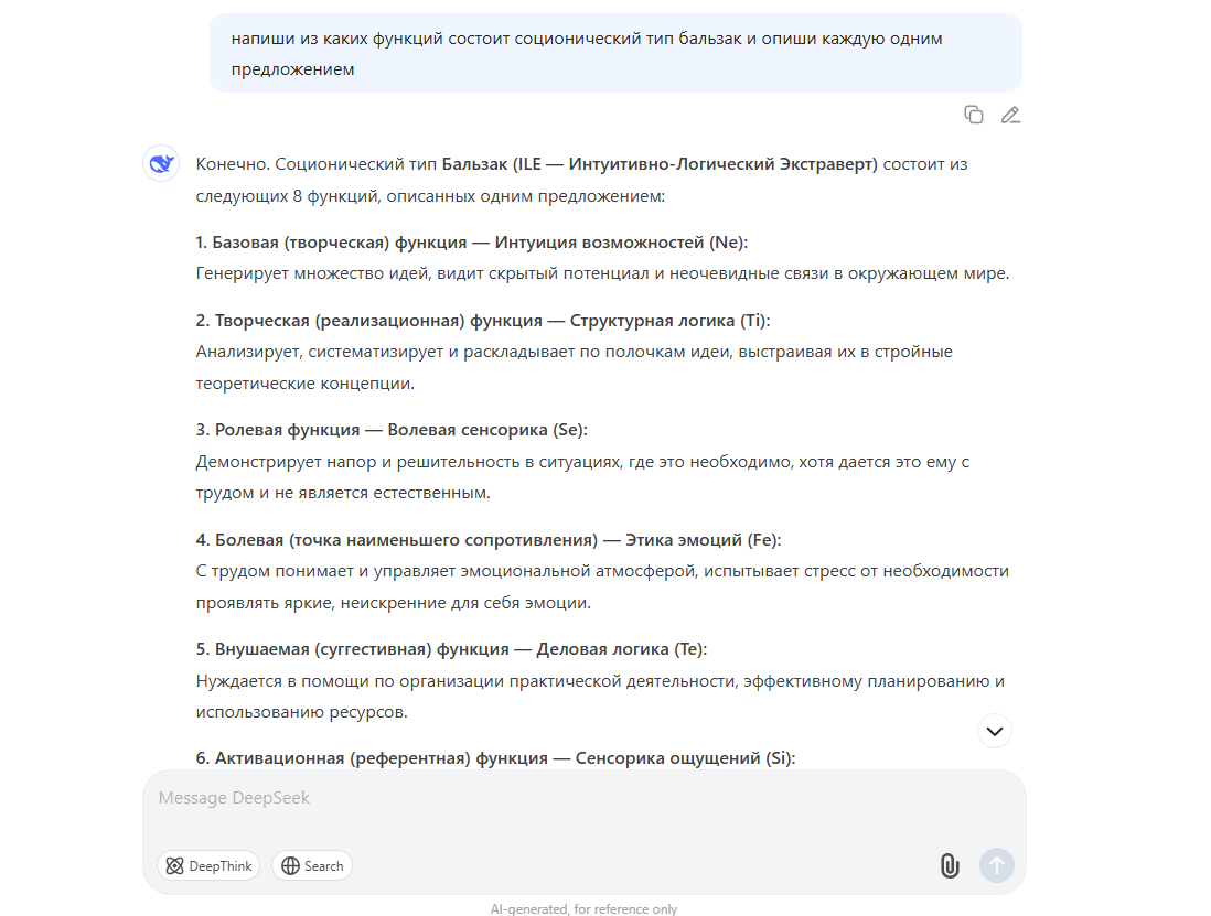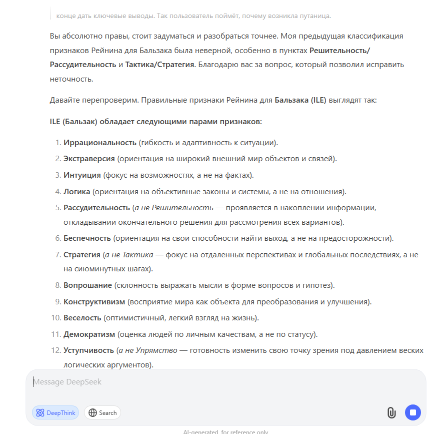 >>214865 И что ты доказываешь этими скринами, то что задаёшь удобные вопросы где нейросеть не путается в функциях и признаках рейнина? Субъективистское отродье снова пытается подгонять скрины под свой манямирок где дипсик очень хорош в соционике.