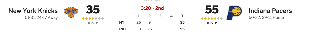Почему-то кажется, что Индиана этот матч, либо следующий - сольет. Скорее всего сценарий будет как с Кливлендом: забирают две гостевые игры, сливают первую у себя дома, и дальше дожимают у себя и в гостях. Возможно завтра заберут, но сольют четвертую. Не верю в свип, у Брансона в какой-то момент должно полететь всё, а у Индианы ничего, как в третьем матче против Кливленда.