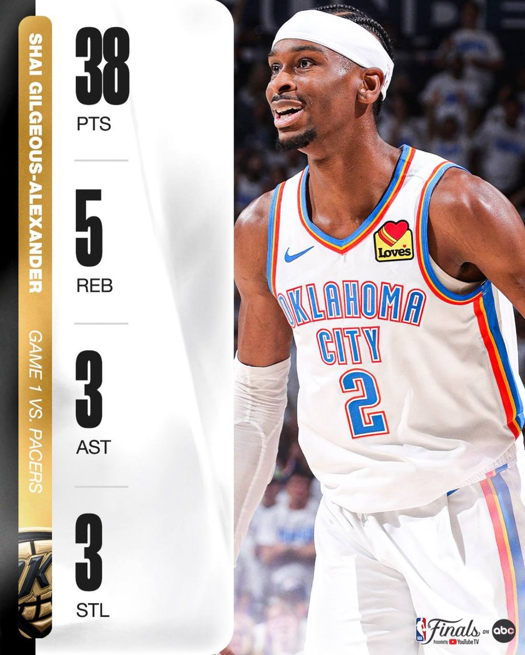 Король Шай сегодня набрал 38 очков, это третий результат в истории в дебютном матче финала НБА. Халибёртон, из которого каждый игрок Оклахомы на площадке клоуна, набрал жалкие 14 очков при 3 потерях. Это не уровень игры главного франчайза, дальше его размажут. Пусть благодарит Сиакама, что как минимум ещё два дня он будет на хайпе , это последние такие деньки для него в этом сезоне.