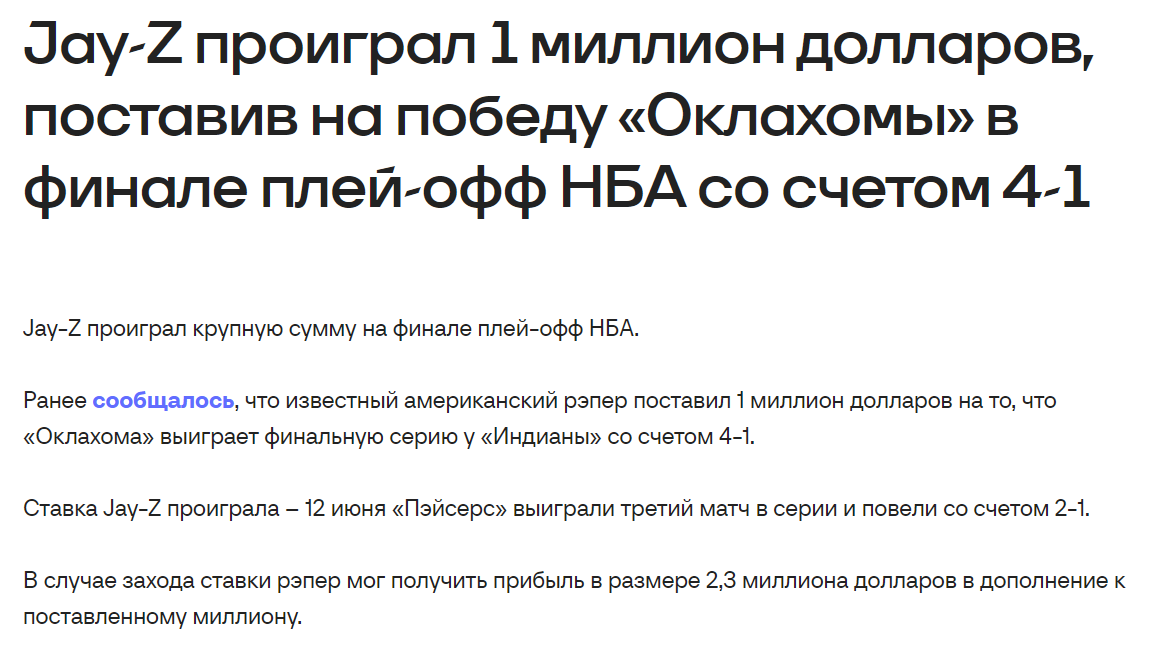 >Интересно, он в курсе, что в баскете есть потолок зарплат, или думает, что можно как с доджерс, раздуть платёжку вдвое и купить чемпионство? Ну, кстати, очевидно, что он пару лярдов переплатил. Лалки столько не стоят даже понимая, что это главное шоу НБА. Тем более оценивая такие активы важно смотреть в перспективу, в тч политика и прочее. Не знаю, как по цифрам, но по-моему интерес к большому спорту у людей падает. Я, конечно, сужу со своего дивана и не знаю, как в Америке относятся люди, всё-таки там поход на матч НБА в течение года развлечение того же уровня, что похож в кино, папа десятков баксов с сыном на матч Шарлотт с Кливленд ом и в таком духе. Но какой-то общий пик озабоченности темой, как было в 90-е или даже в 10-е, такого нет. Ну и перспективы быстро меняются. Сейчас США мировой гегемон, завтра революция, и коммунисты всё за пару лет разваливают до уровня Бразилии, да, собсно, Трамп и сам неплохо справляется, вон за день обрушил всё пошлинами, теорема Тарана в действии: каждый американский президент хуже предыдущего.