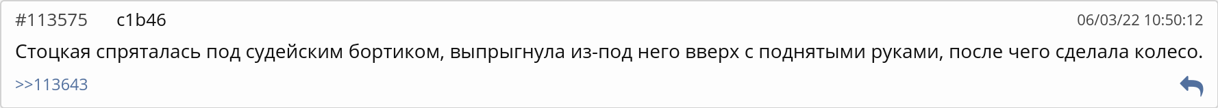 Я думал первый форс Стоцкой тут был начиная с Битвы школ в сезоне 22-23, на 2 этапе в ноябре 22-го. Но нет. Выпрыгивала и делала колесо она в сезоне 21-22, даже Венгр тогда среагировал. :kostorka4: